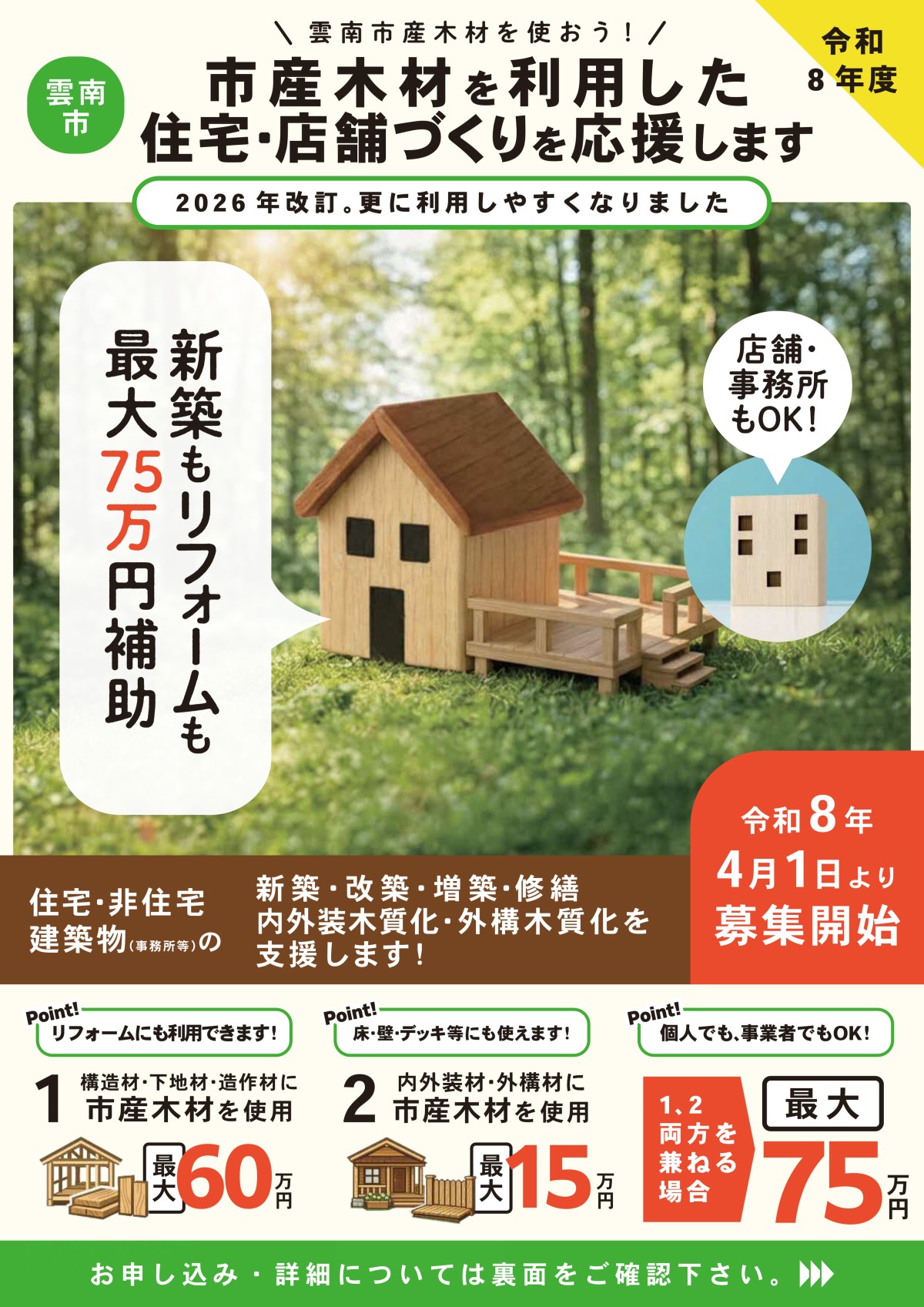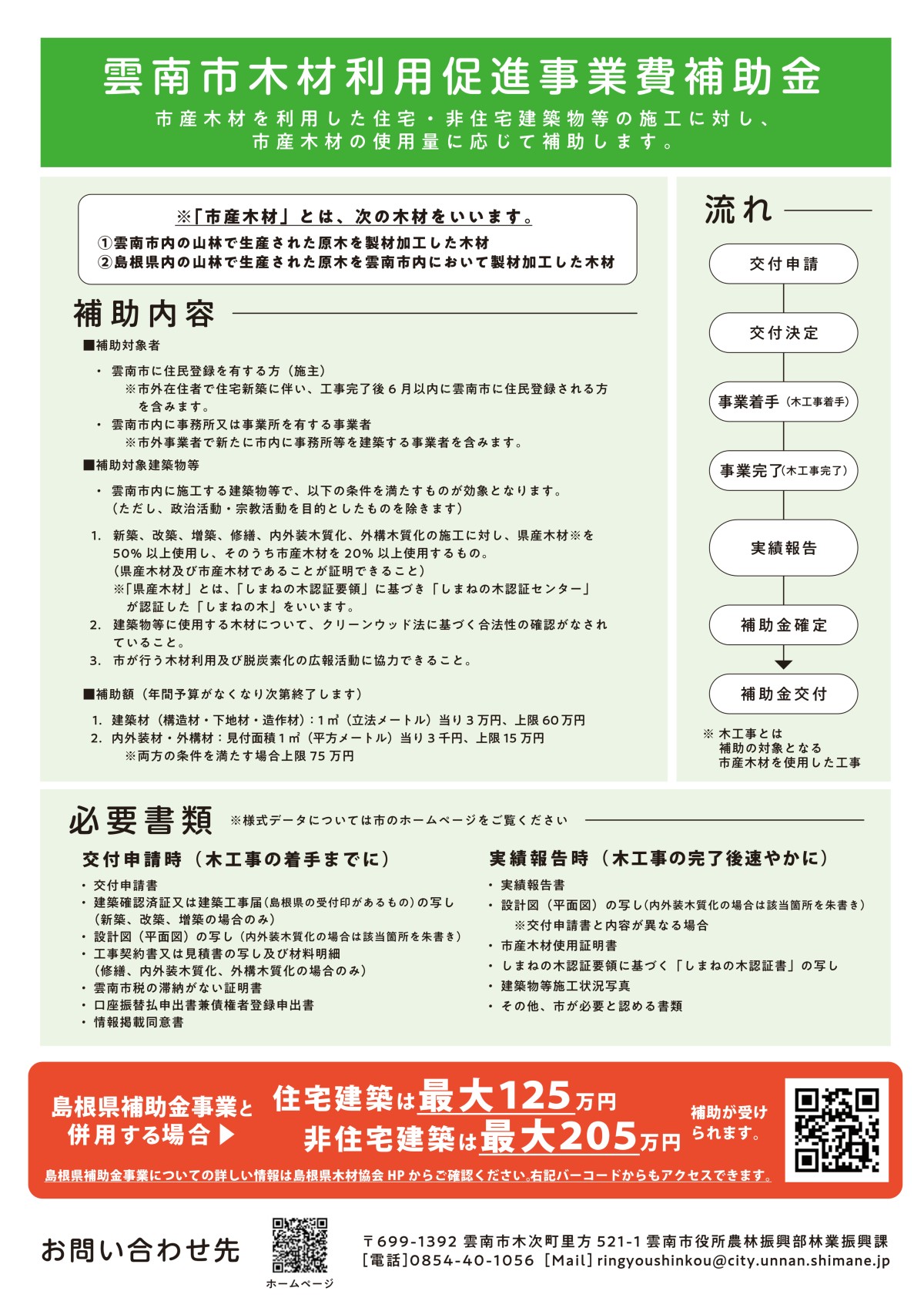 1.事業名 雲南市木材利用促進事業補助金(別紙パンフレット)